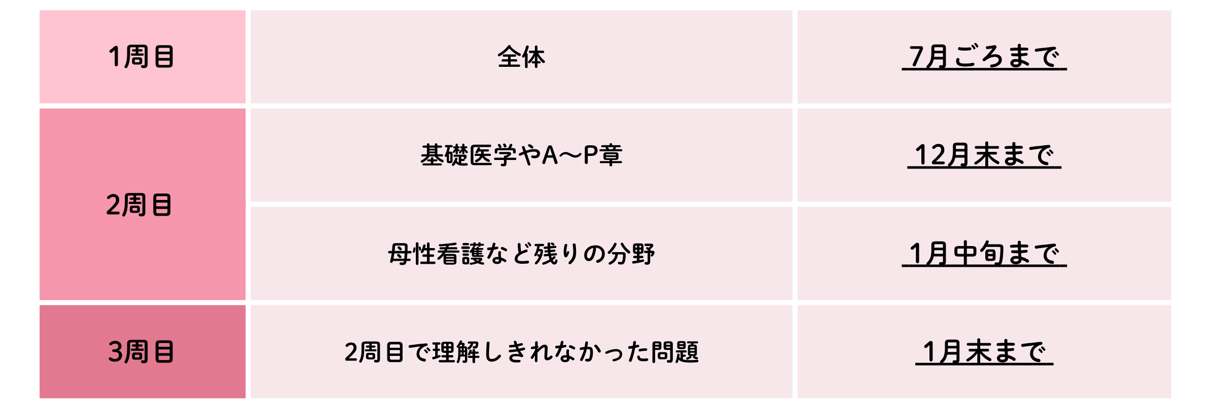 上記のスケジュールで進めると、余裕を持って国試対策を進められます。
