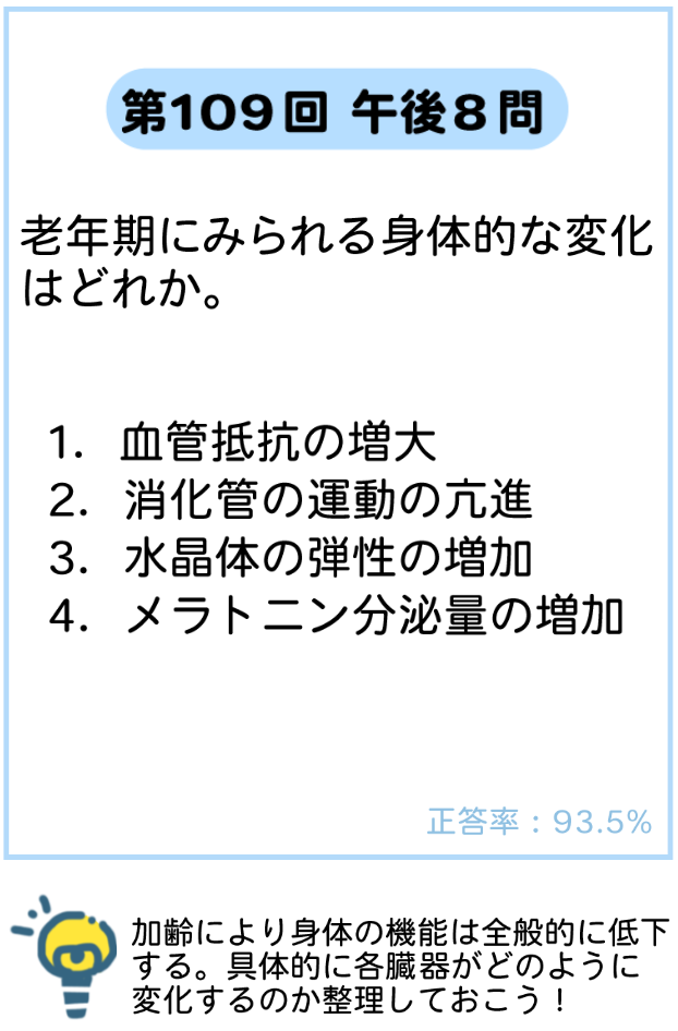 今回のテーマは「加齢による身体的機能の変化」! 過去10年の看護師国家試験で20回出たほど頻出のテーマなので確実におさえましょう!