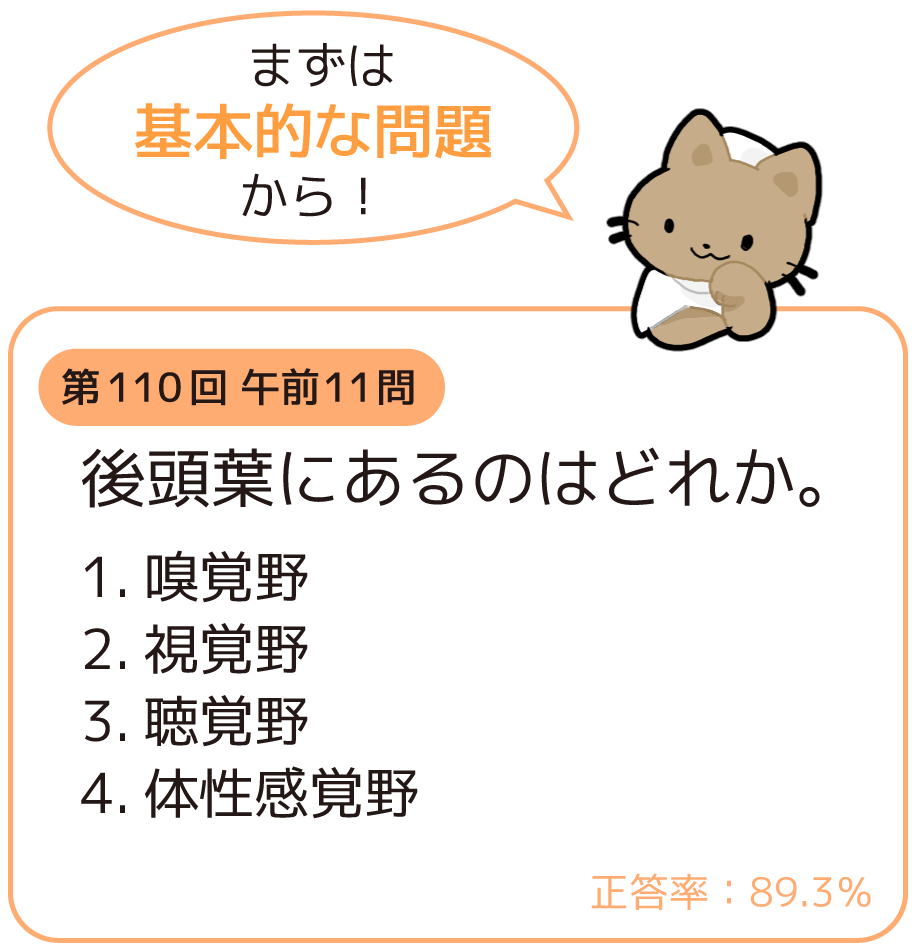 後頭葉には視覚野が存在し、視覚とその認識に関わっています。よって、答えは2です。