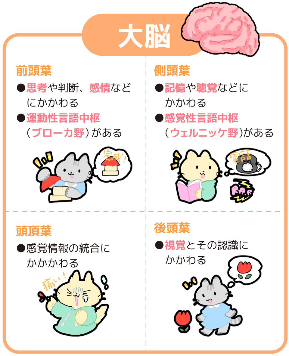 脳っていうだけで難しそう、覚えられない…となりがちですよね。大脳の働きを押さえておくと、疾患が理解しやすくなります。この機会に確実におさえましょう!