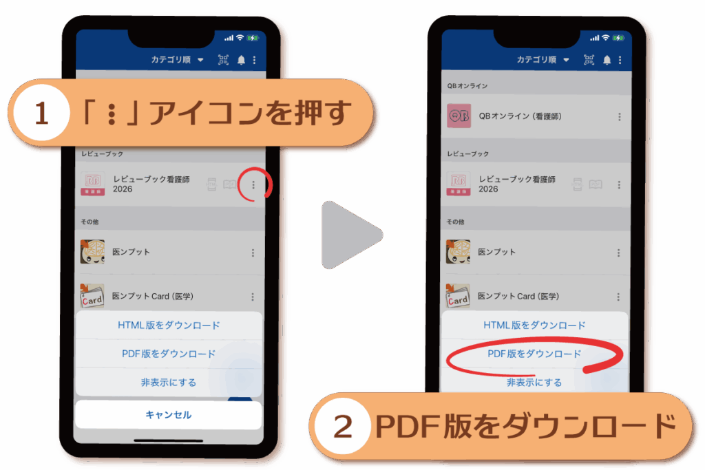 PDF版を利用するには、右端の「︙」アイコンから「PDF版をダウンロード」を選択してください。