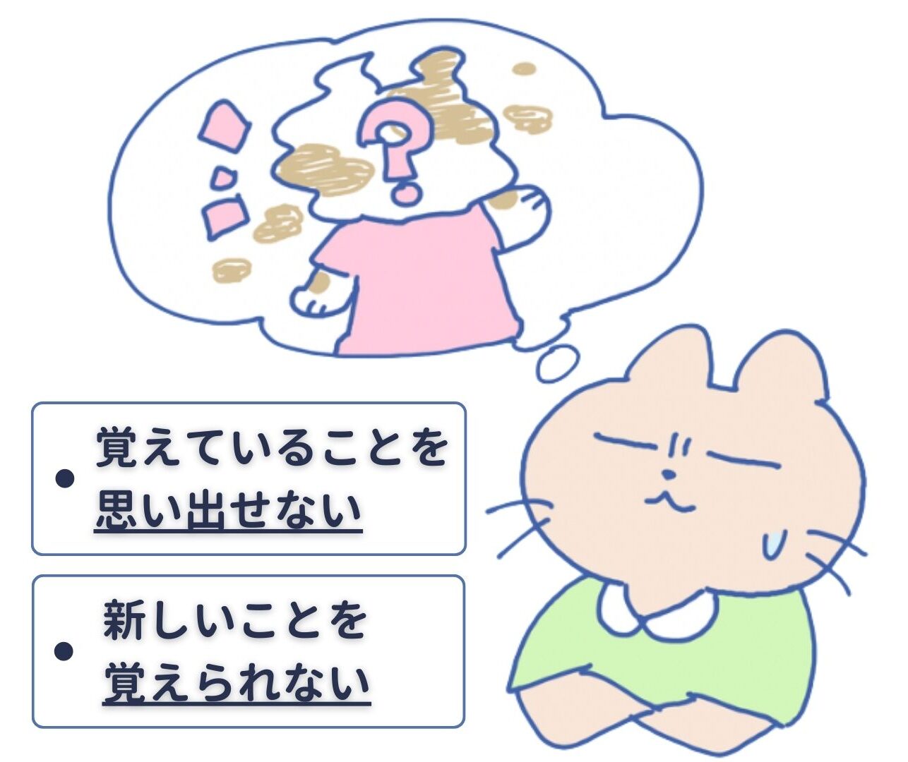 記憶障害とは、記憶に関する障害のことをいい、覚えていることを思い出せない新しいことが覚えられない状態を指します。